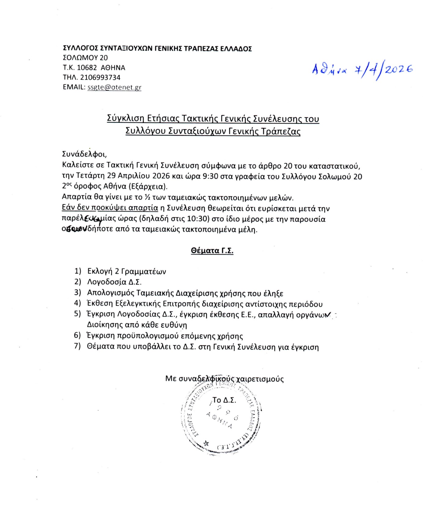Σύλλογος Συνταξιούχων Γενικής Τράπεζας Ελλάδος